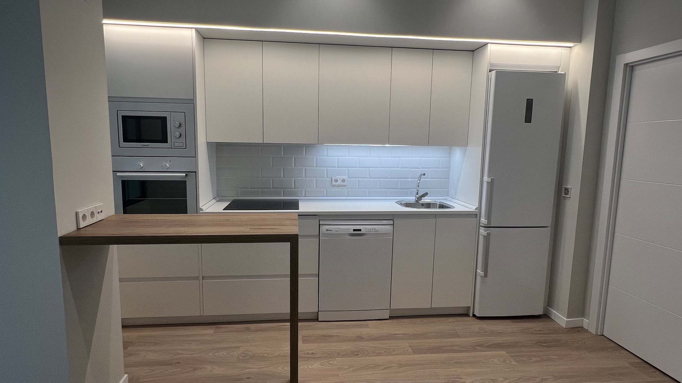 Cocina en laminado blanco mate
