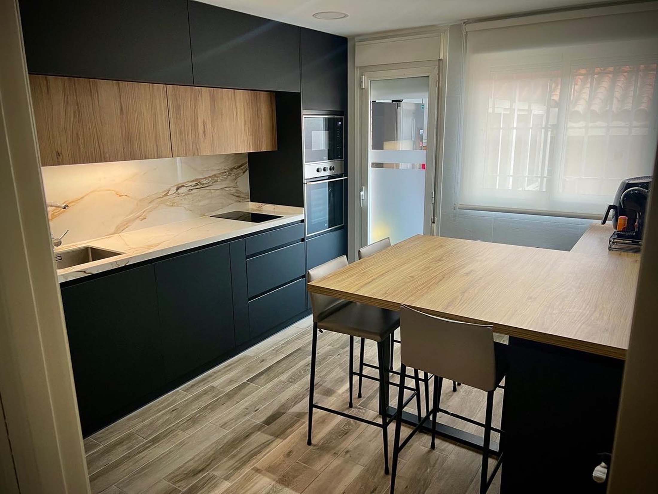RT Estudio de Cocinas – Interiorismo ha diseñado y ejecutado una cocina que destaca por su elegancia y funcionalidad, combinando materiales de alta calidad para satisfacer las necesidades más exigentes.
